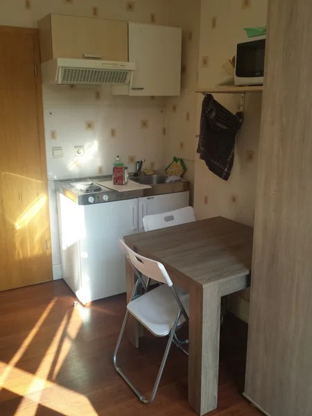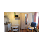 - d'une pièce (chambre / bureau) avec un coin cuisine américaine, excepté pour les 2 grands studios où la cuisine est une pièce séparée.